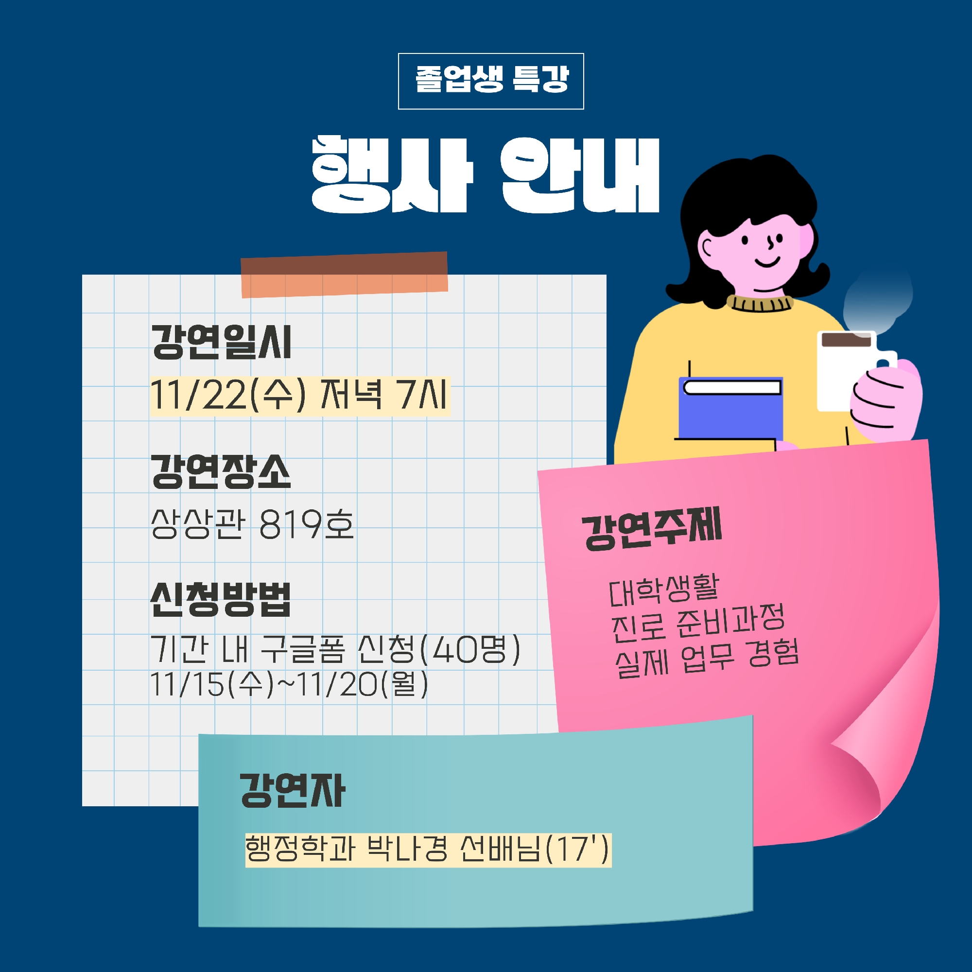 ✔️강연일시: 11.22. (수) 저녁 7시 ✔️신청기간: 11.15(수)~11.20(월)