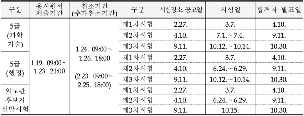 | 제목 | 2026년도 국가공무원 공개경쟁채용시험 일정 | ||||